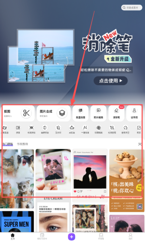 2、进入后即可在主界面找到“照片橡皮擦”选项,如下图所示: