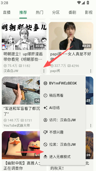 1、pilipro无痕模式保护用户个人安全隐私,点击播放详情页面下方的三点选项进入无痕模式。