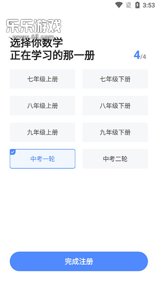 3、选择你数学正在学习的那一册,然后点击完成注册;