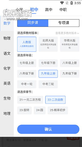 5、点击切换,有小学课程、初中课程、高中课程、又同步课和专项课,分的很细,有助于用户体验。