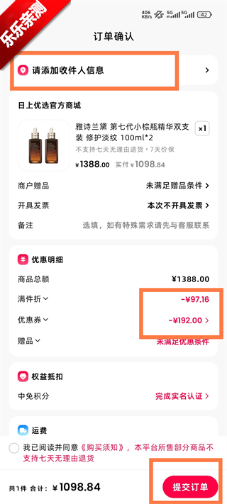 4、填写收件人信息,点击提交订单