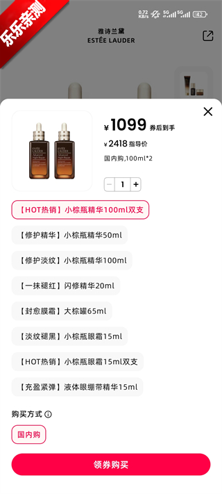 3、选择规格,点击领劵购买