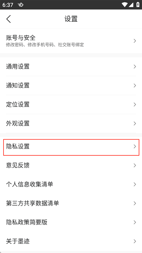 2、找到并点击隐私设置;