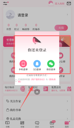 1、下载后打开app使用手机号一键注册登录就能同步你的阅读进度和收藏列表了。