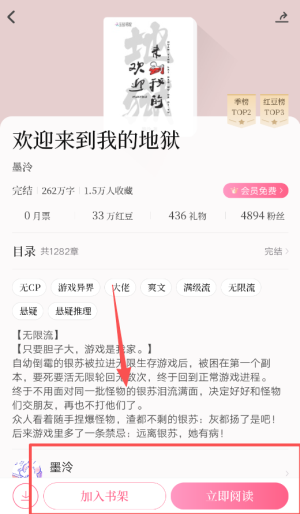 4、将书加入书架方便续读还能开启更新提醒这样就不会错过最新的章节内容了。