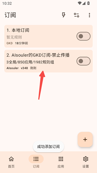 6、接下来点击订阅成功的规则,在点击应用规则;