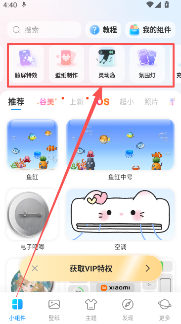 1、进入软件首页小组件页面,点击上方灵动岛功能。