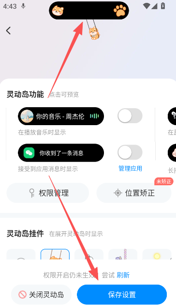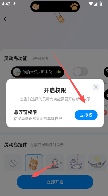 4、确认设置当前的灵动岛效果,请按照提示去开启必备的悬浮窗权限。