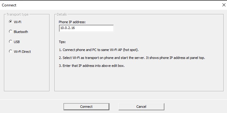 7、服务器成功启动后,将显示手机的IP地址(如“10.0.2.16”),该地址将用于后续客户端连接。