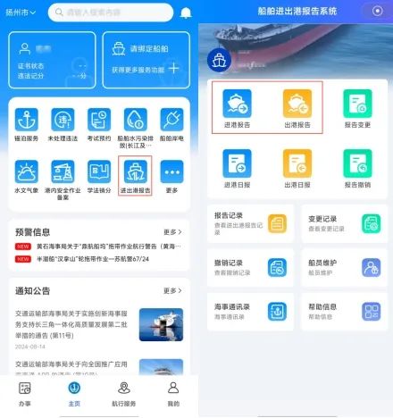 此外,进出港报告系统中还可查看船舶进出港报告记录、变更记录、撤销记录、船员维护、海事通讯录等,功能齐全且方便查询!