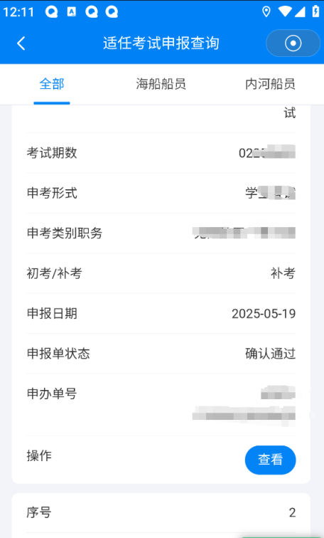 3.资格审核:考生提交报名信息后,初考考生需等待后台审核。考生可以在海事通“考试申报查询”内实时查询审核状态。