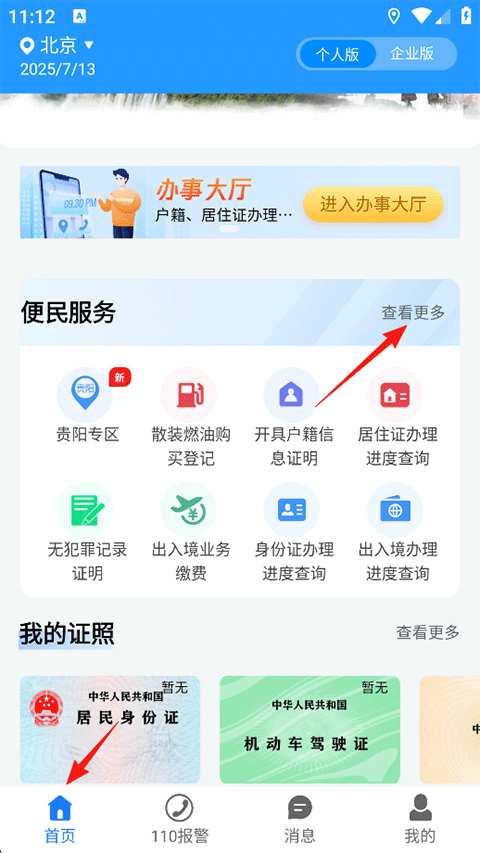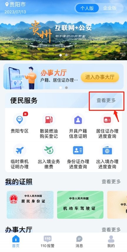 第一步:下载安装“贵州公安”APP,进入app界面点击“查看更多”