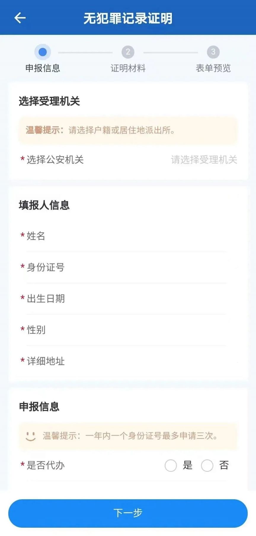 5、准备好资料后,就点击申报,然后进入以下界面,按照要求填写相关信息。