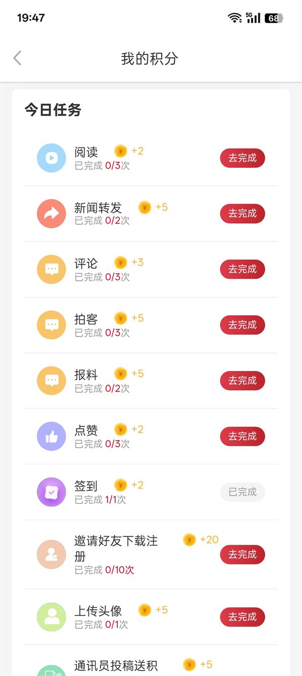 通讯员投稿积5分,每日上限为1篇