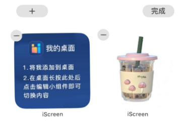 4、点击左上角加号,搜索iScreen添加大号和中号组件。