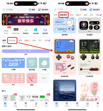 1、首先打开我的桌面APP,点开“超级组件”栏。