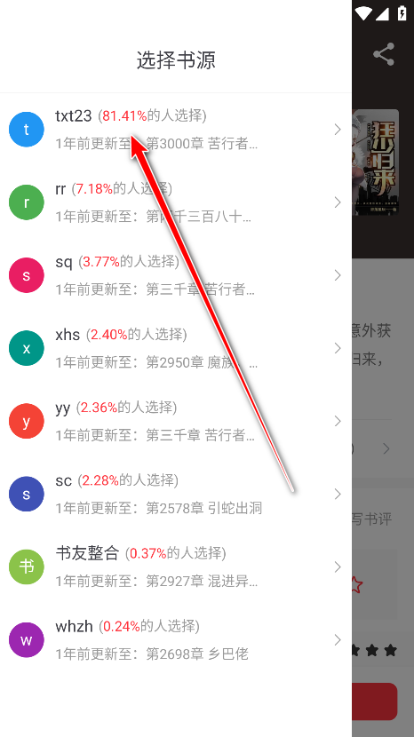 3.选择并点击一个书源。