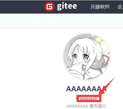 Gitee主页下图指示处,查看自己【用户名】,注意账号不包含“@”符号。