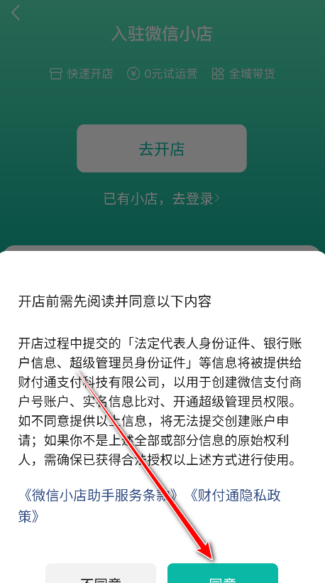 1.打开微信小店助手,点击同意。