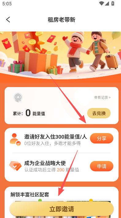 2、选择你的邀请方式,并进行分享操作,邀请成功并办理入住,即可获得对应的奖励部分。
