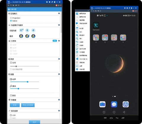 1、软件连上手机后会自动在手机上安装APP,免费版最高支持640P分辨率,这个分辨率其实不是特别的清楚,糊糊的。专业版支持1080P分辨率。还有一些截图,录制视频的功能。