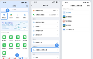 3、【手机端->工作台->管理企业->外部联系人权限设置】;