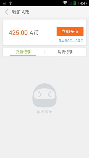 比如增加了几张活动广告图啊,A币查询和消费记录等等,我就晒晒富了,截图一张“我的A币”,你们有多少A币呢?