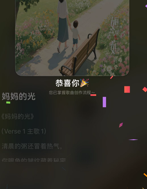 一首好听的与母亲有关的歌曲就生成啦,他还会根据内容生成歌曲名字。