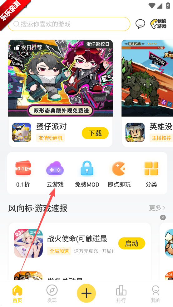 2、进入云游戏模块后,挑选你喜欢的游戏。
