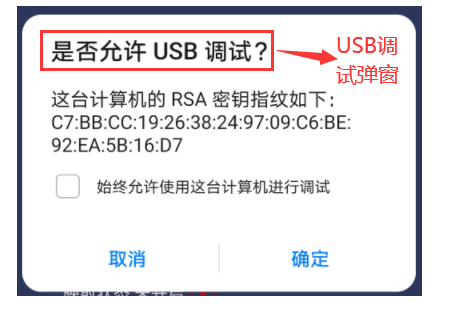 情况二:是数据线,权限也全部开启,但是没有调试请求弹窗?