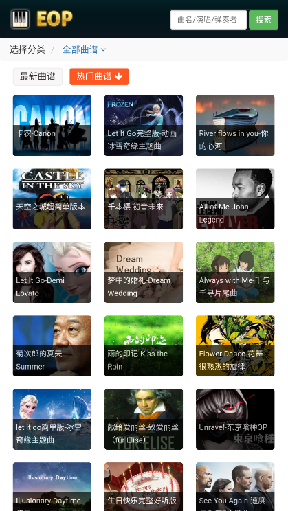 EOP简谱这是一款专业的琴谱应用,通过该应用用户是能够获取到不错的曲谱服务的,随时随地都是能够进行调节演奏等等,能够极大的满足大家的琴谱演奏需求,在这里也是提供了全面的简谱内容,有想要了解更多的朋友现在就来下载吧!