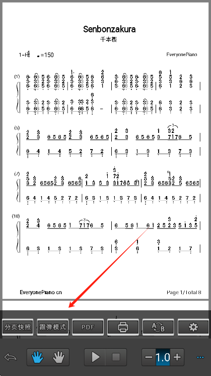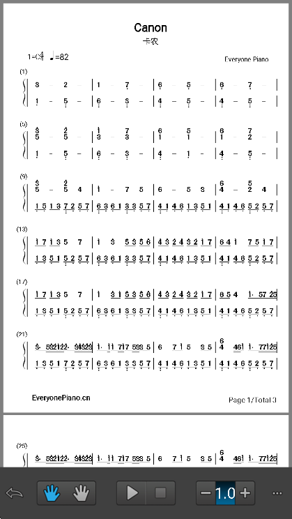 EOP简谱,提供双手钢琴简谱,可播放,跟弹,关闭左右手等。