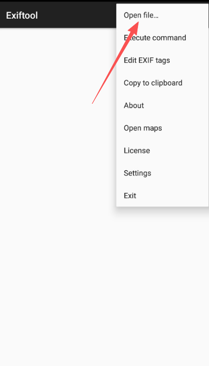 1、下载安装照片信息查看器Exiftool,点击如图所示箭头open file省略号的字母条。