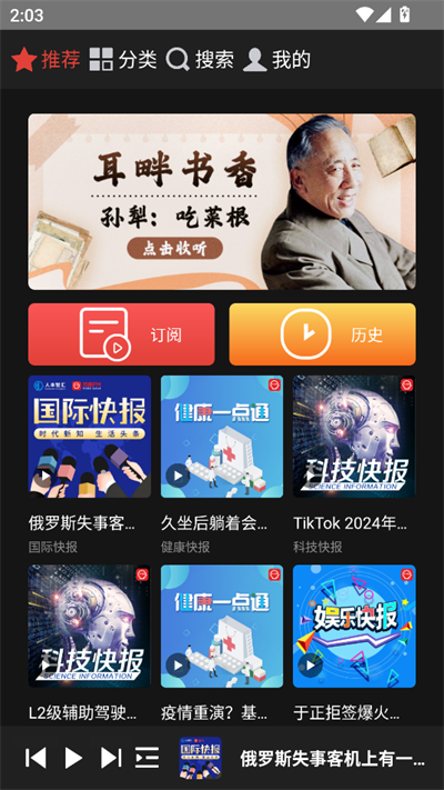 凤凰FM深度整合凤凰卫视独家资源与海量版权内容,覆盖新闻、亲子等20余个领域,每日更新超千小时精品节目,创新搭载AI智能推荐系统,可精准匹配用户兴趣,让用户轻松获取喜欢的内容,而且还设有多种互动功能供用户体验,需要的朋友们快来下载吧!