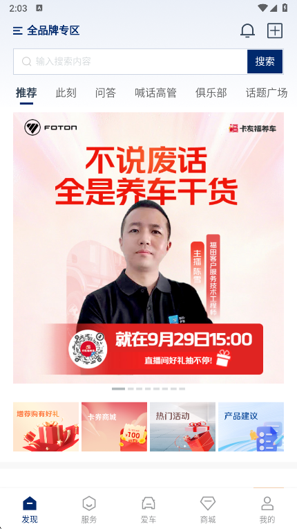 福田e家App是福田汽车为广大卡友用户精心打造的集热销车型、社交资讯、用车服务、会员积分商城为一体的数字化平台。