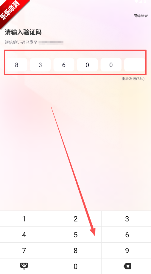 3、虚拟数字键盘,填写刚才app端发送的验证码数字信息。