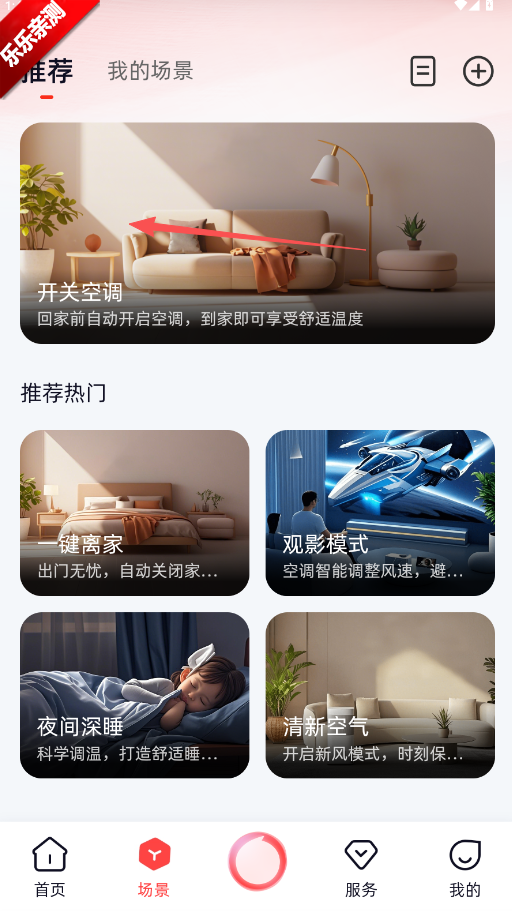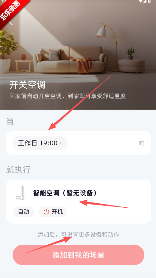 4、验证完成功,来到软件场景功能,选择你要添加的场景,例如乐乐小编这里要添加“开关空调”,直接点击选中。