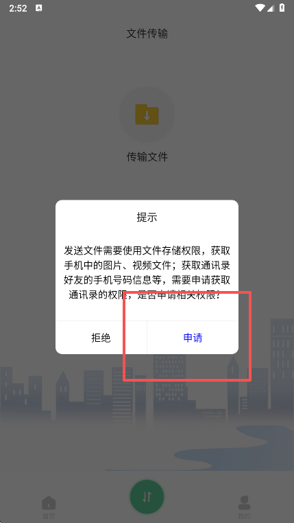3、我们点击传输文件或者接收文件,同意相关的使用权限