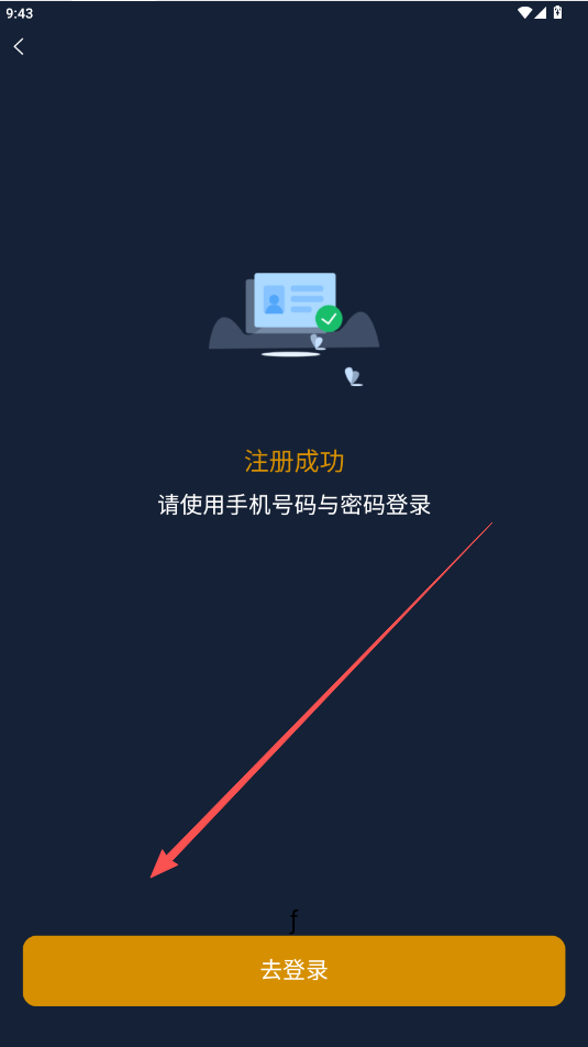 3、提示注册成功,会引导你去到登录界面,使用刚才注册的手机号及密码登录。