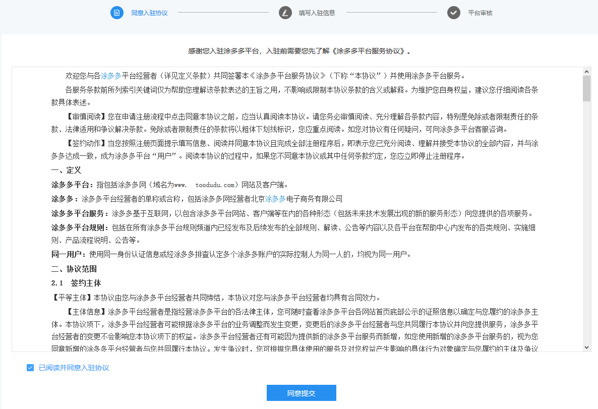 4、执行完毕后,仔细阅读入驻服务协议及有关注意事项“同意提交”。