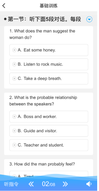 1、通过微技能、专项训练,夯实听说知识体系,针对不同话题、不同模式,进行智能训练。还可实时匹配并智能推送相应能力级别的题目,全程监测和记录学生的答题数据和能力进阶变化。