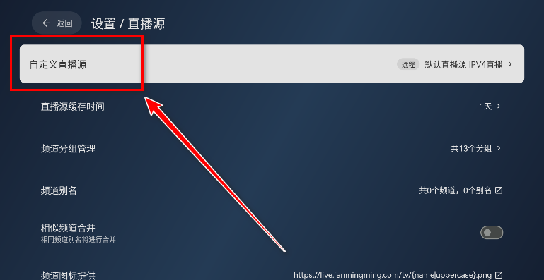4.点击自定义直播源。