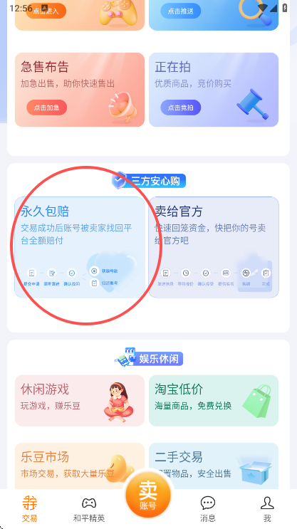 1、首页是提供了专门的卖账号专区的,直接点击进入即可