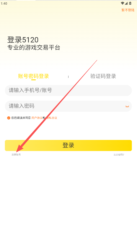 2、在用户登录界面点击“注册账号”。