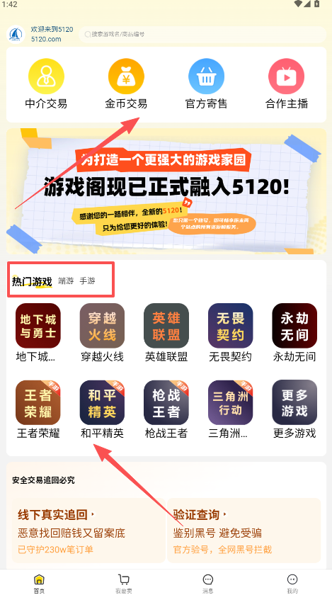 《5120游戏平台》是一款专业的第三方游戏交易服务平台,全面覆盖手游与端游账号交易、账号回收、游戏代练及虚拟资源购买,通过严格的实名认证、永久找回包赔与专属客服体系。不管是手游、端游的账号买卖,还是账号回收、代练,甚至游戏币购买,都能一站式搞定,还带永久找回包赔、实人认证等安全保障,想捡漏毕业账号、快速处理闲置号,或是找靠谱代练的玩家,用它都能让交易既快又安心。
