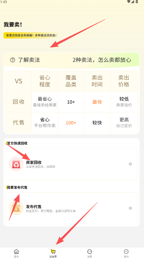 5、若是想要出售账号及其他游戏相关,请在“我要卖”版块,了解卖法详情,通过官方快速回收或是发布代售的形式,完成以上操作。
