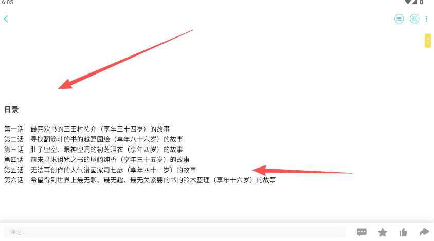 3、下滑页面,在目录中点选所要阅读的章节内容部分。