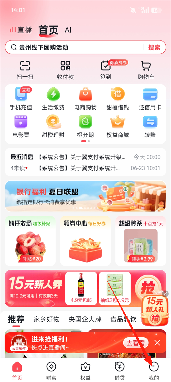 2、用户可以通过翼支付在各大商家进行扫码付款,无需携带现金或银行卡。