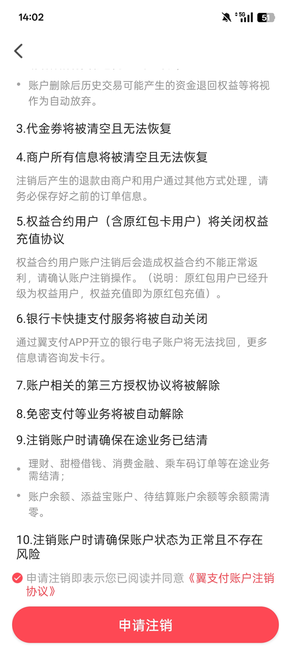 5、勾选同意协议后,点击【申请注销】即可成功注销账号