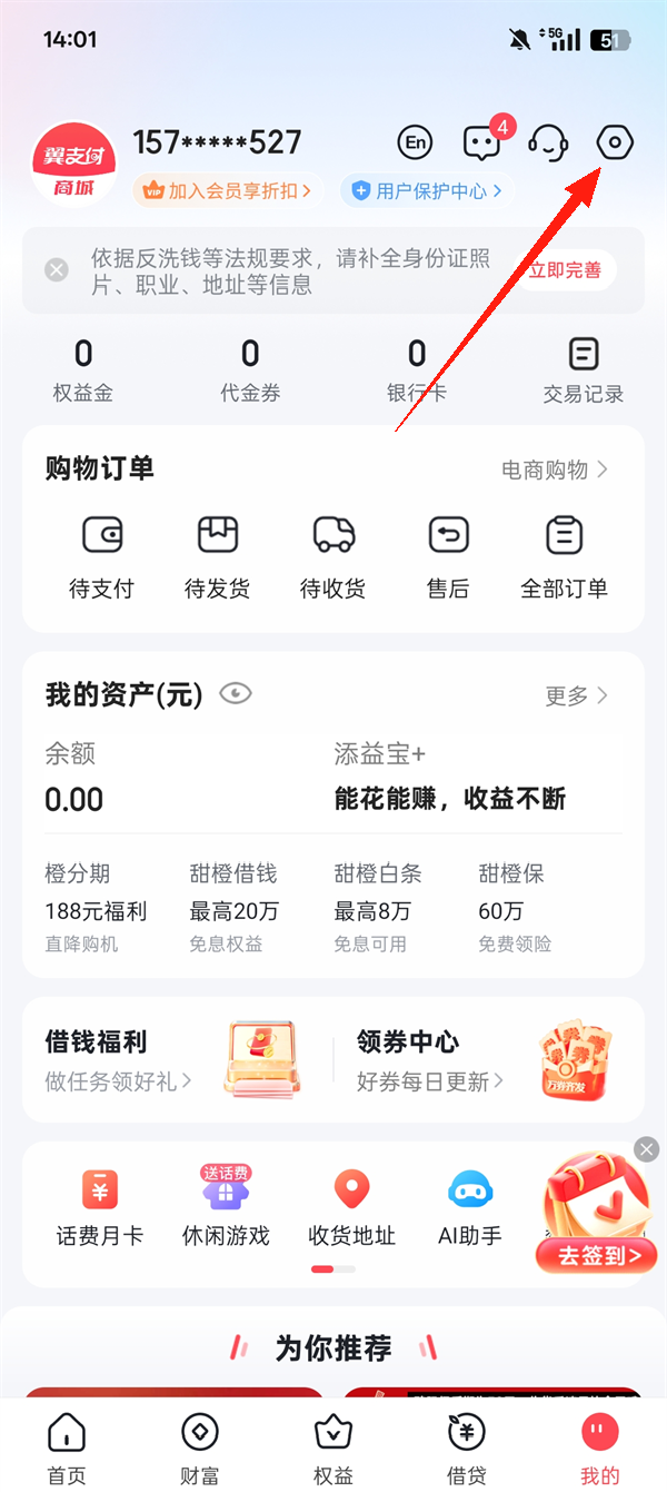 5、如果是其它自动缴费的话可以在首页我的界面中点击右上角的设置功能。